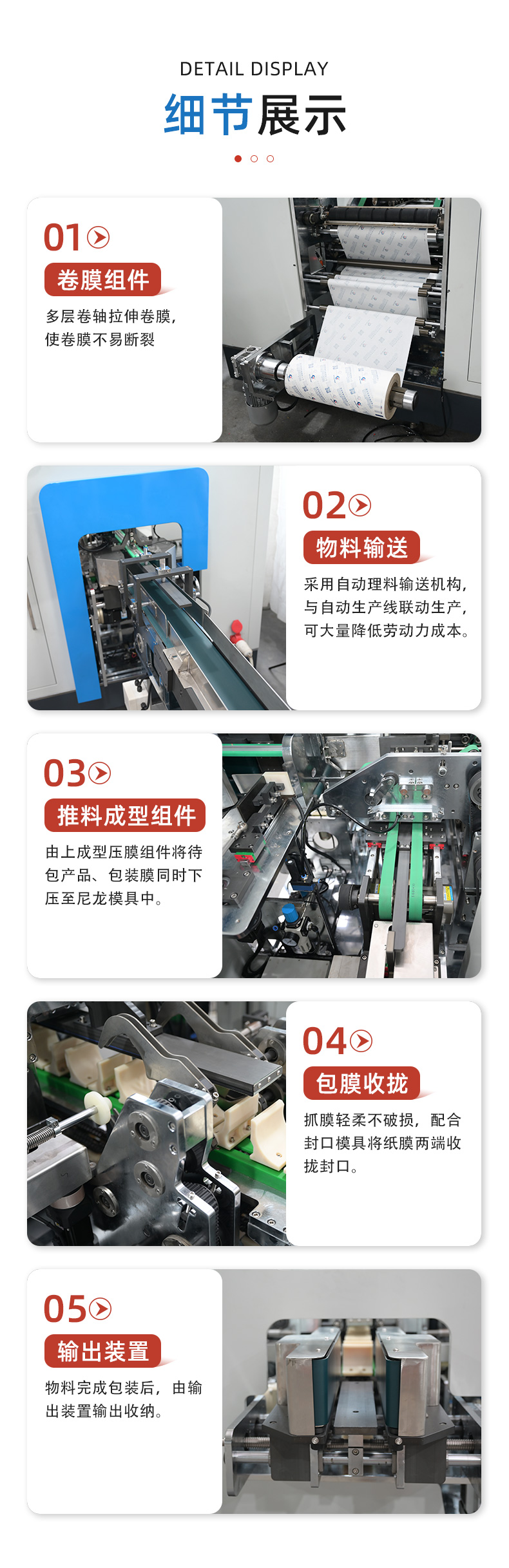 產(chǎn)品概述:全自動(dòng)拷貝紙包裝機(jī)適用于卷紙自動(dòng)包裝。傳動(dòng)主要以主電機(jī)輸出,傳入鏈輪、鏈條、帶輪、連桿、齒輪、再結(jié)合伺服電機(jī)、行星減速機(jī)、渦輪減速機(jī),高壓真空泵,氣脹軸、凸輪分割器、傳感器,編碼器等輔助功能轉(zhuǎn)向?qū)崿F(xiàn)功能轉(zhuǎn)換的一種機(jī)械運(yùn)動(dòng),達(dá)到包裝運(yùn)行穩(wěn)定,工作效率高,加工產(chǎn)品品質(zhì)優(yōu)越,操作簡易快捷等諸多優(yōu)點(diǎn)于一身的圓筒式包裝結(jié)構(gòu)。